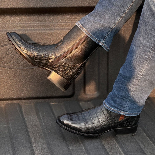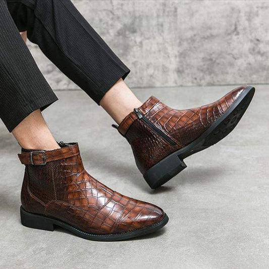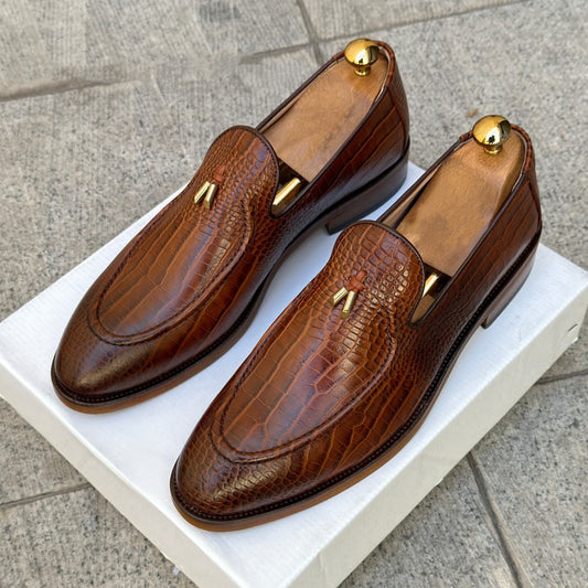 Men's Crocodile Pattern Double Buckle Monk Shoes