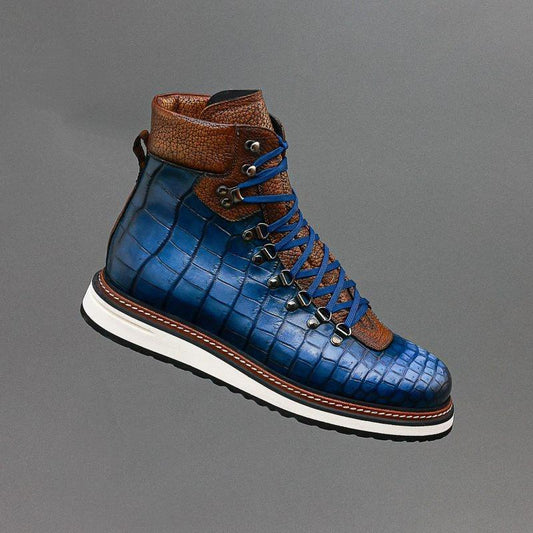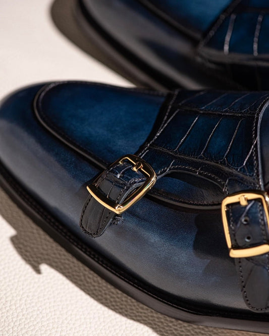 Triple Joint Crocodile Pattern Stitching Oxford Shoes