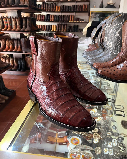 Burgundy Crocodile Print Cowboy Boots