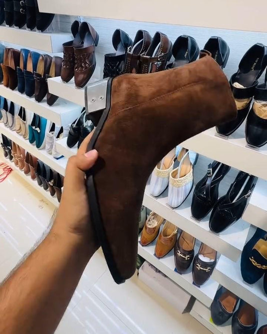 Brown Suede Zipper Chelsea Boots