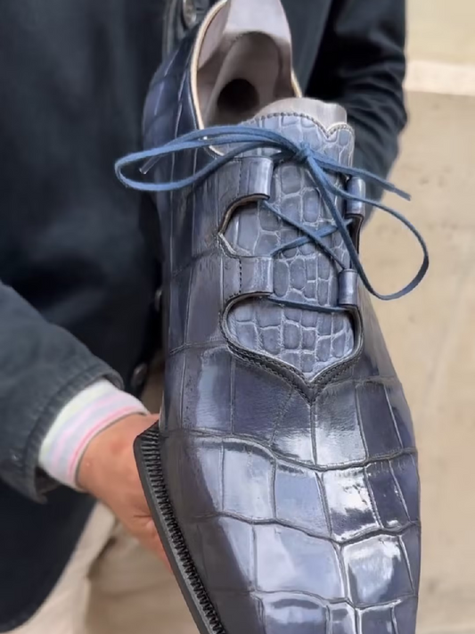 Crocodile Print Leather Shoes Blue