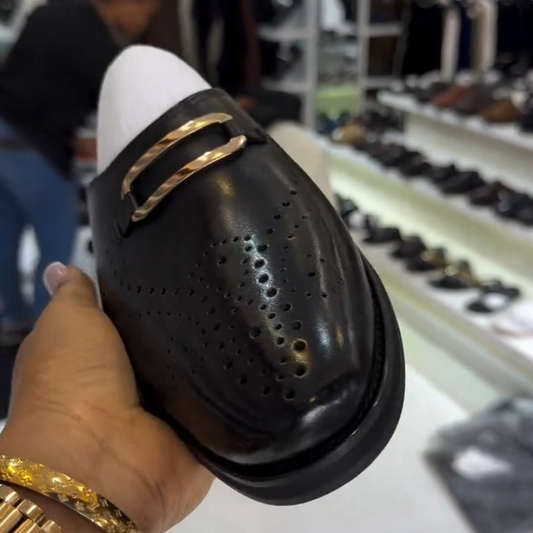 (⏰Last Day Promotion $7 OFF)Men's Black Calfskin Perforated Half Slippers
